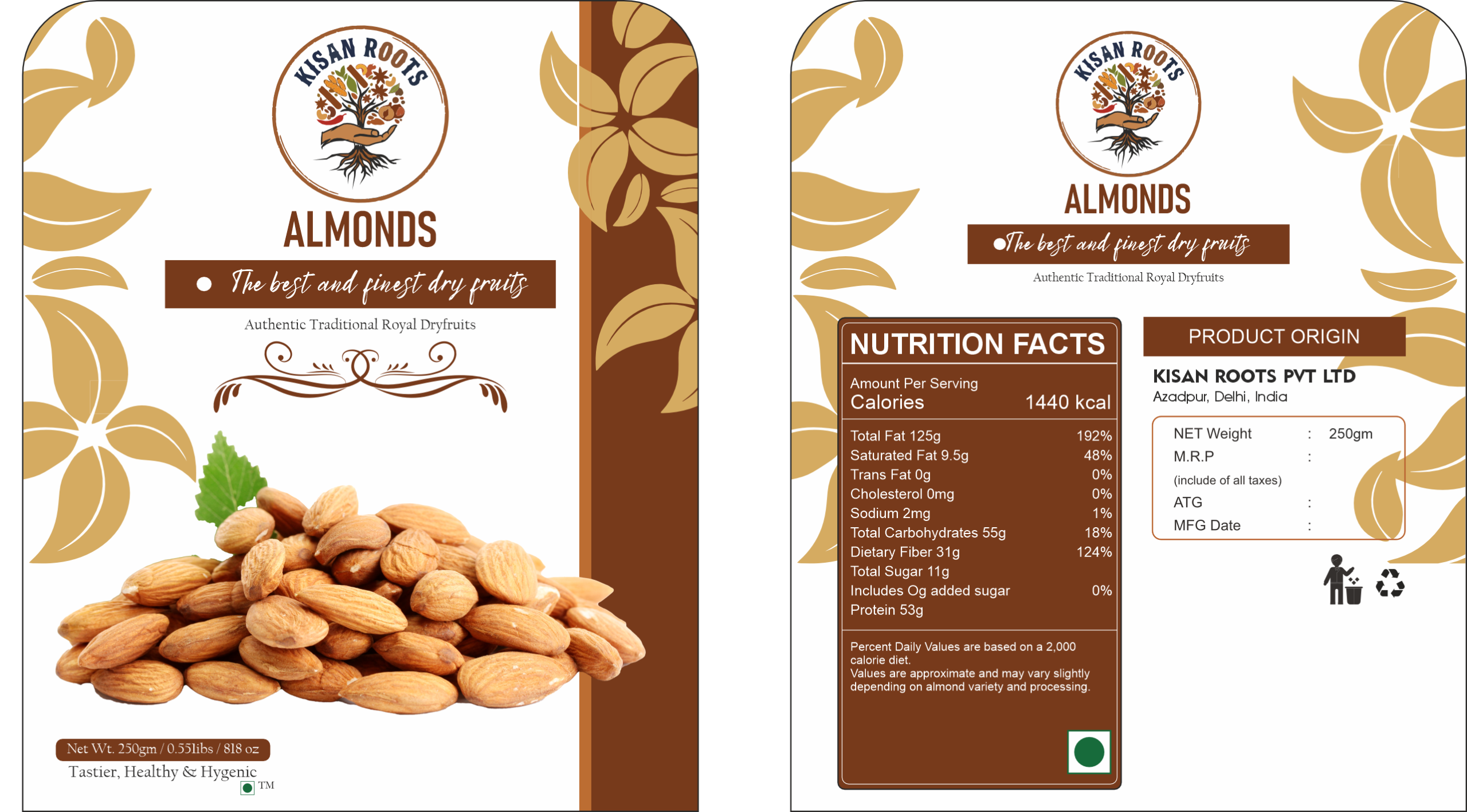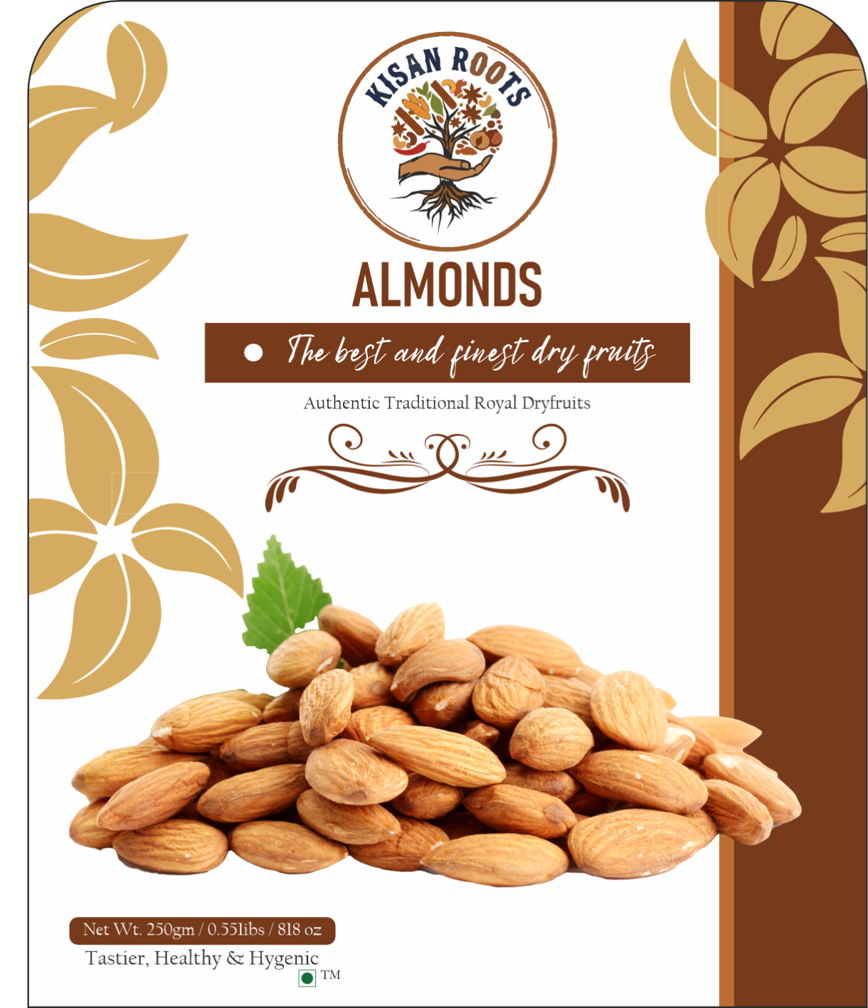 Kisanroot’s almonds have a delightful crunch in every bite and are nutrient-rich. Zip Lock Pouch has an airtight seal to guarantee product security and freshness. Adds flavour and nutrition to both sweet and savoury dishes and make it nutrient-dense and flavorful.